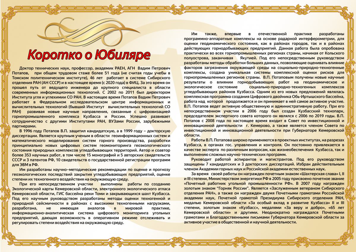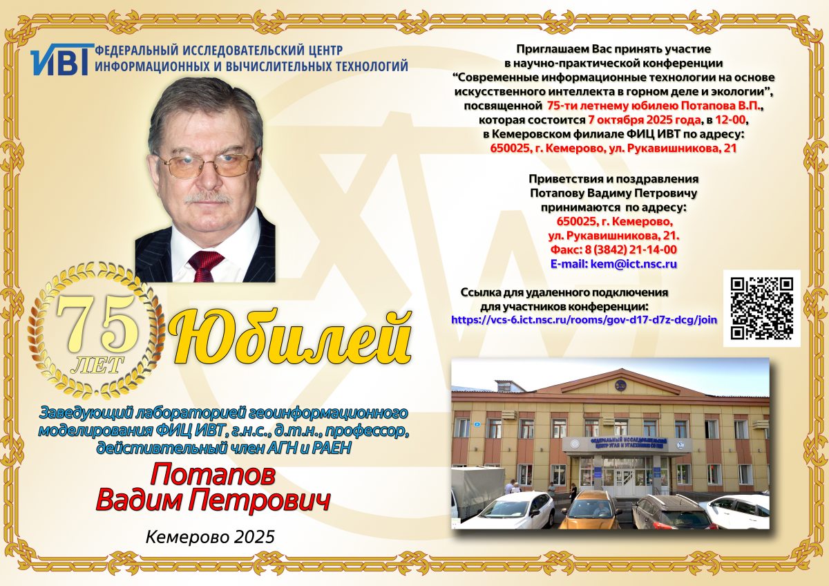 Приветствия и поздравления Потапову Вадиму Петровичу принимаются по адресу: 650025, г. Кемерово, ул. Рукавишникова, 21. Телефон/Факс: 8 (3842) 21-14-00 E-mail: kem@ict.nsc.ru
